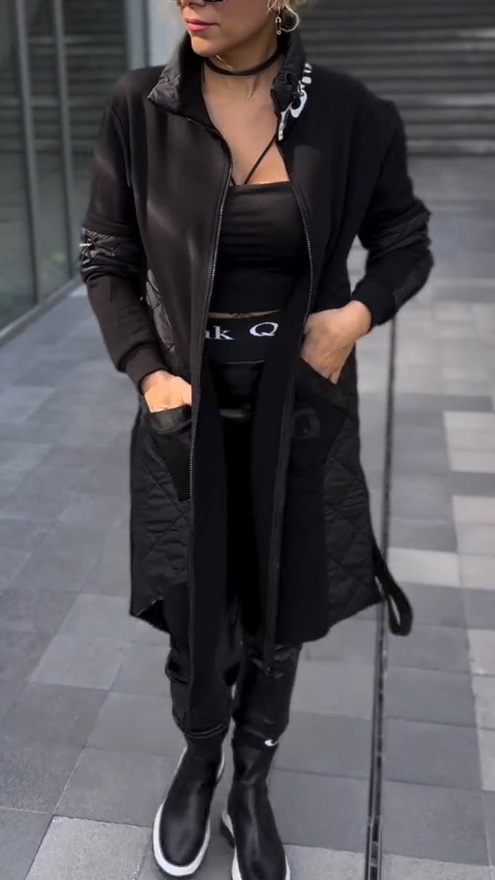 Women Stand Collar Printed Letters Temperament Casual Long Jacket